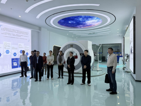 调研组一行首先参观了硕金医疗磁共振精准微创治疗成套设备展示中心。在一楼磁共振室,董秘岳亮向调研组详细介绍了硕金医疗自主研发的磁共振精准微创治疗成套设备,并现场演示,凸显了产品的技术领先性和临床适用性。